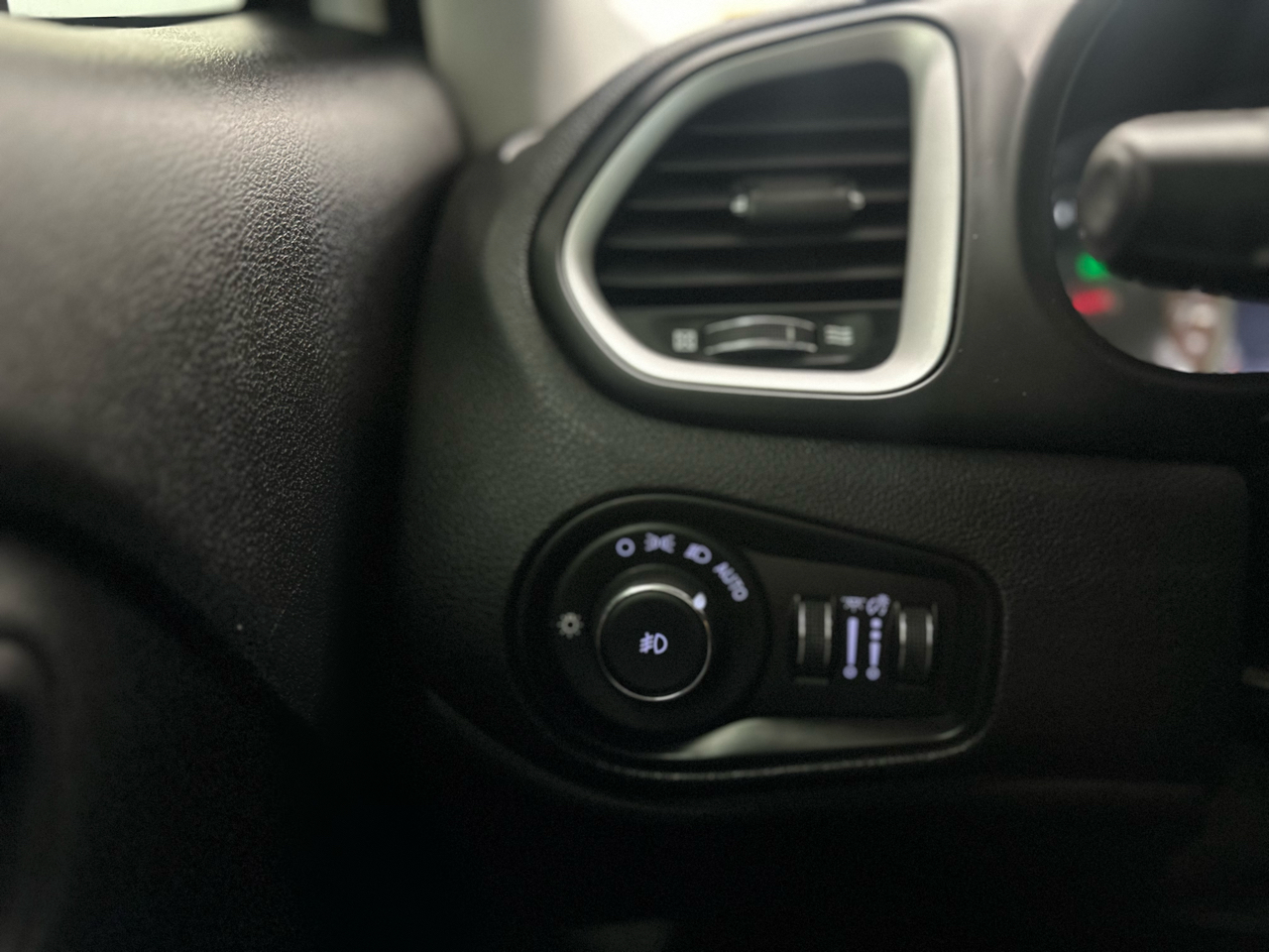 This Jeep has style too, sporting a sleek black grille with chrome accents and front fog lamps for added visibility. The interior features a leather steering wheel and dual-zone front automatic air conditioning for maximum comfort. Plus, the ParkView Back-Up Camera adds an extra layer of safety when maneuvering in tight spots.